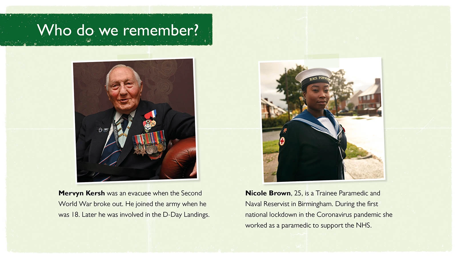 Darganfyddwch 80 mlynedd ers Diwrnod VE a Diwrnod VJ ac archwiliwch sut mae gwasanaeth ac aberth yn cael eu cofio. Mae’r adnodd hwn yn cynnwys straeon, ffotograffau, ffilmiau a gweithgareddau sy’n dod â’r gorffennol a’r presennol at ei gilydd.