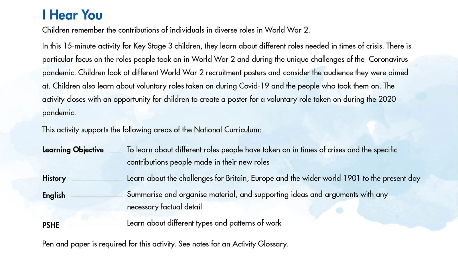 created to help 11-14 year-olds explore and take part in Remembrance.