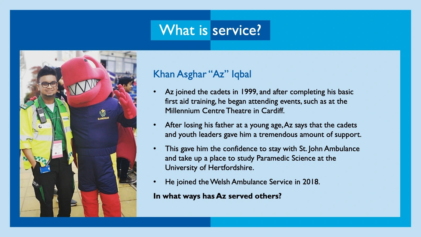 An assembly for GCSE aged school children helping them understand and mark Remembrance through the theme of Service. Service video and detailed case studies included.