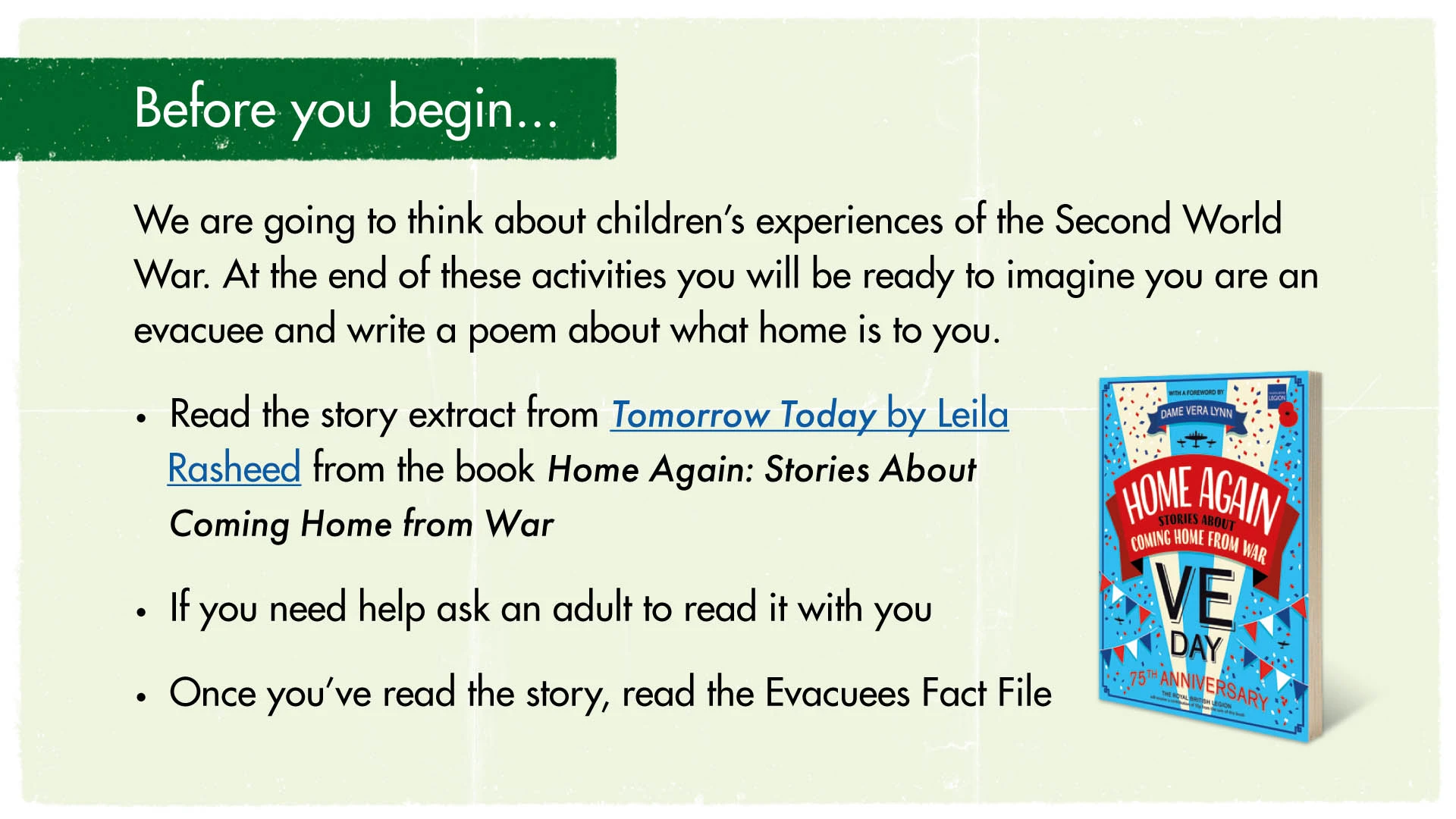 Take part in Remembrance through creative writing and the voices of children from WW2 through the short story 'Tomorrow Today' by Leila Rasheed.